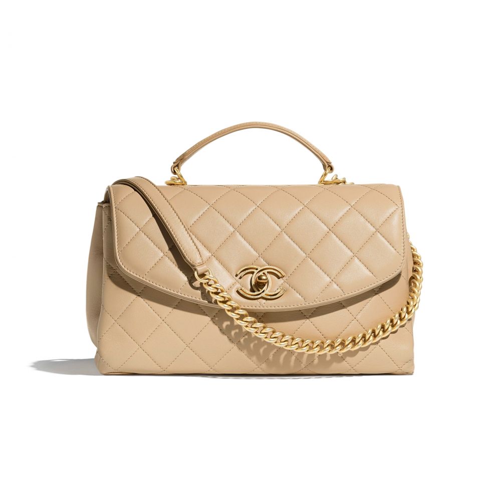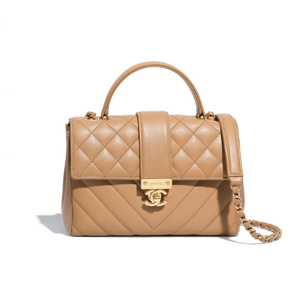 Chanel Flap Bag with Top Handle Calfskin & Gold-Tone Metal Beige (售价港币$29,200)
