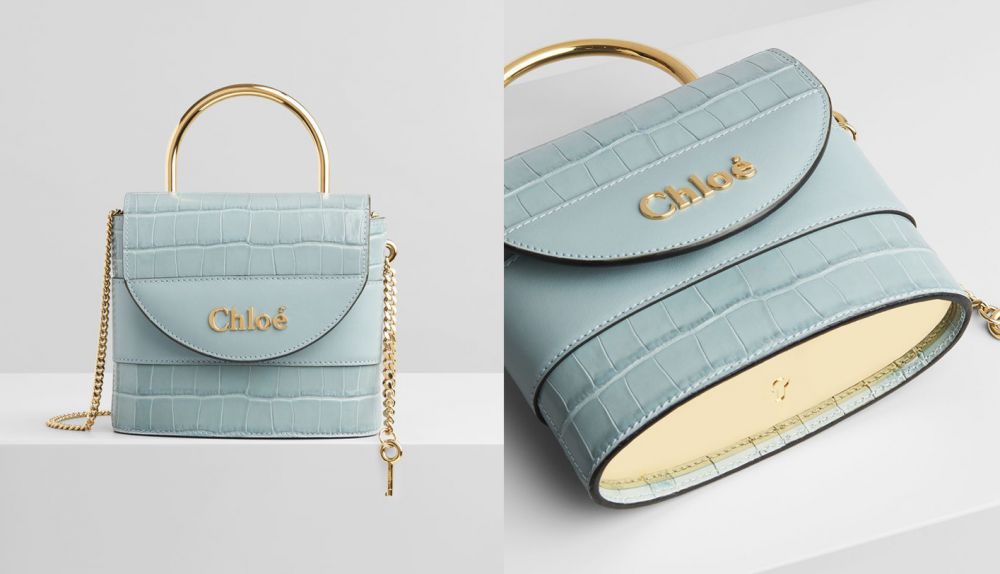 Chloé 2019秋冬系列推出的ABYLOCK手袋,灵感取自2006年推出Paddington手袋。今年春季再推出Faded Blue复古淡灰蓝色,延续经典挂锁设计。鳄鱼纹压花小牛皮、立体金属Chloé Logo、珠宝链条上饰有金色钥匙,更显奢华格调。