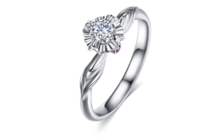 金多福珠宝的这款戒指灵感源自《梦仙谣》:“前程渐觉风光好,琪花片片粘瑶草。”在更加美好的未来里,彼此就像琪花瑶草一样缠缠绵绵。