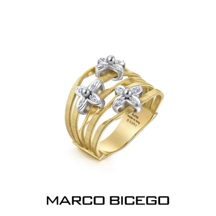 恍如穿越神秘沙丘,霎那间巧遇惊艳花丛。Marrakech Onde 副系列是 Marco Bicego 标志性 Marrakech系列的延伸,珠宝设计重新演绎经典的 18K 手织黄金弦线 「The coil工艺」, 打造出独特不规则的波浪椭圆形。变幻多姿的线条勾勒出层层沙丘,尽显神秘莫测的自然韵味;盈盈钻石与金色线条精巧交织,宛若绿洲间盛放朵朵闪耀之花,孕育出流光溢彩的手工技艺,映衬着女性时尚优雅的动人气质。涟漪线条在光影间自在流动,晶莹之花凝固生命的靓丽姿态,赋予日常别具一格的感官之美。